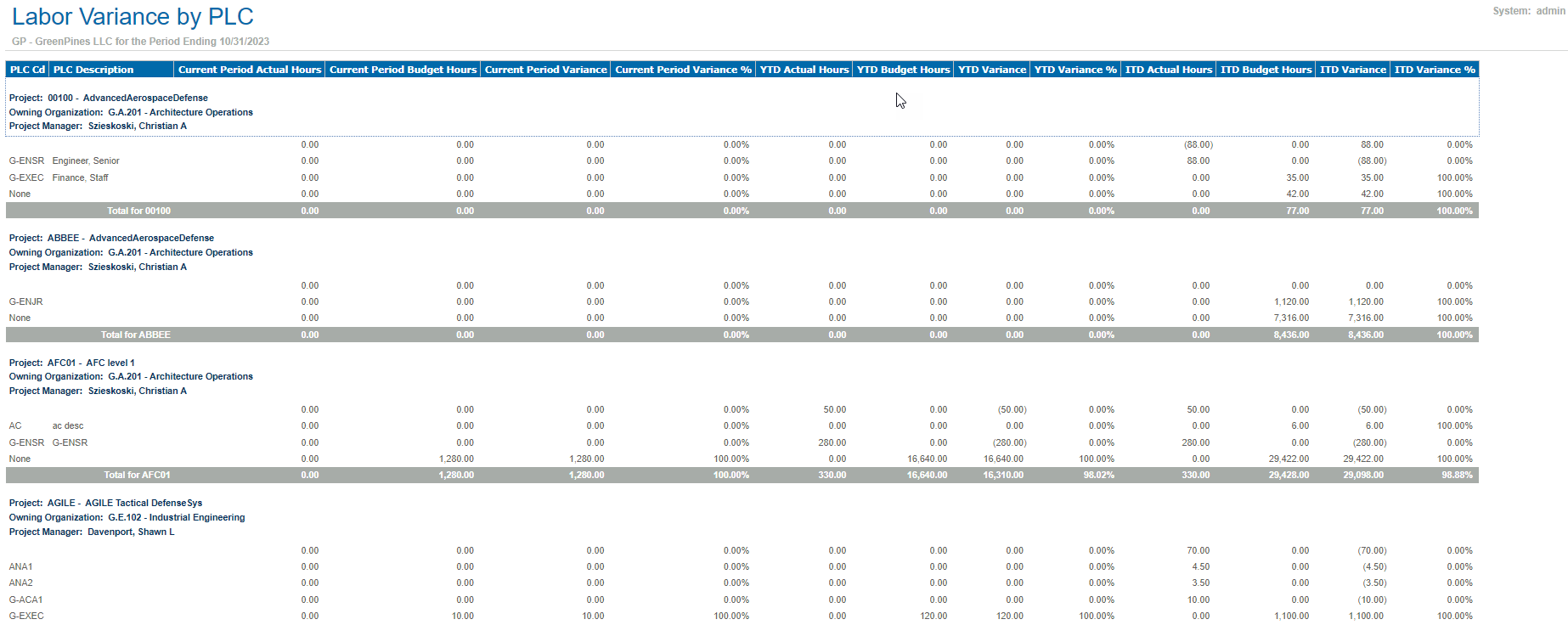 Sample Report This is a sample of the Labor Variance by PLC report. Parent Topic: Labor Variance by PLC Report HomeReports & AnalyticsWelcome to Costpoint Business IntelligencePlanningPlanning ReportsLabor Variance by PLC ReportSample Report