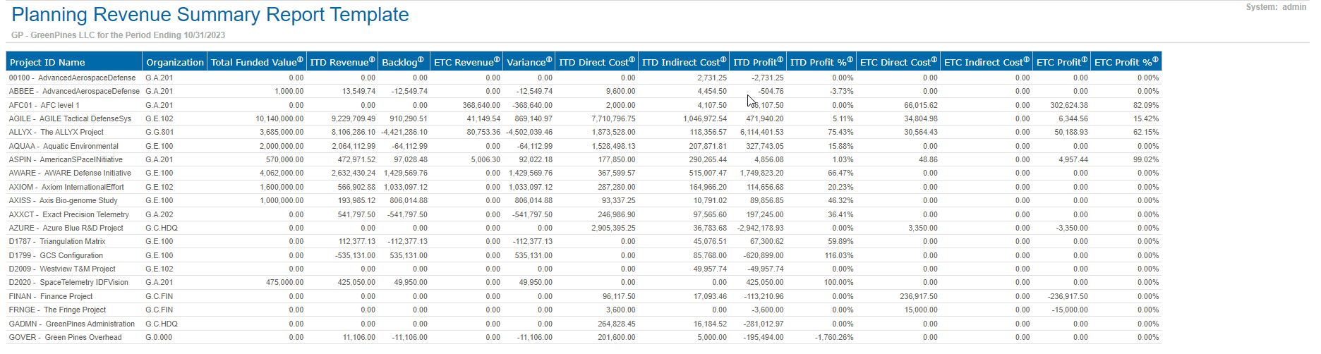 Sample Report This is a sample Planning Revenue Summary Report Template. Parent Topic: Planning Revenue Summary Report Template HomeReports & AnalyticsWelcome to Costpoint Business IntelligencePlanningPlanning ReportsPlanning Revenue Summary Report TemplateSample Report