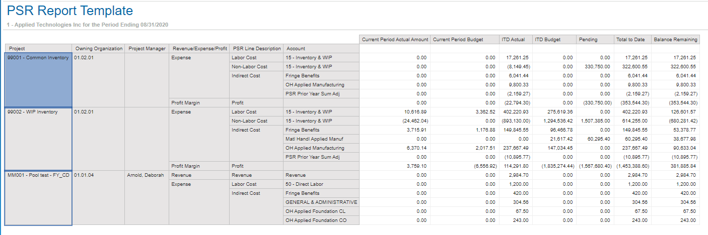 Sample Report This is a sample of the PSR Report Template. Parent Topic: PSR Report Template HomeReports & AnalyticsWelcome to Costpoint Business IntelligencePlanningPlanning ReportsPSR Report TemplateSample Report