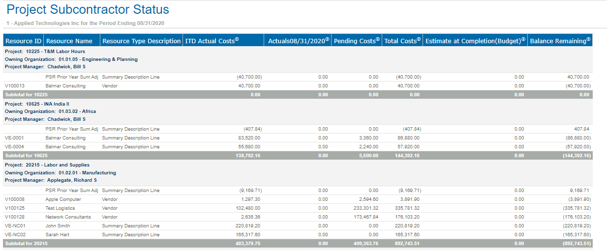 Sample Report EAC is the selected Budget Type for this Project Subcontractor Status report. Parent Topic: Project Subcontractor Status Report HomeReports & AnalyticsWelcome to Costpoint Business IntelligencePlanningPlanning ReportsProject Subcontractor Status ReportSample Report